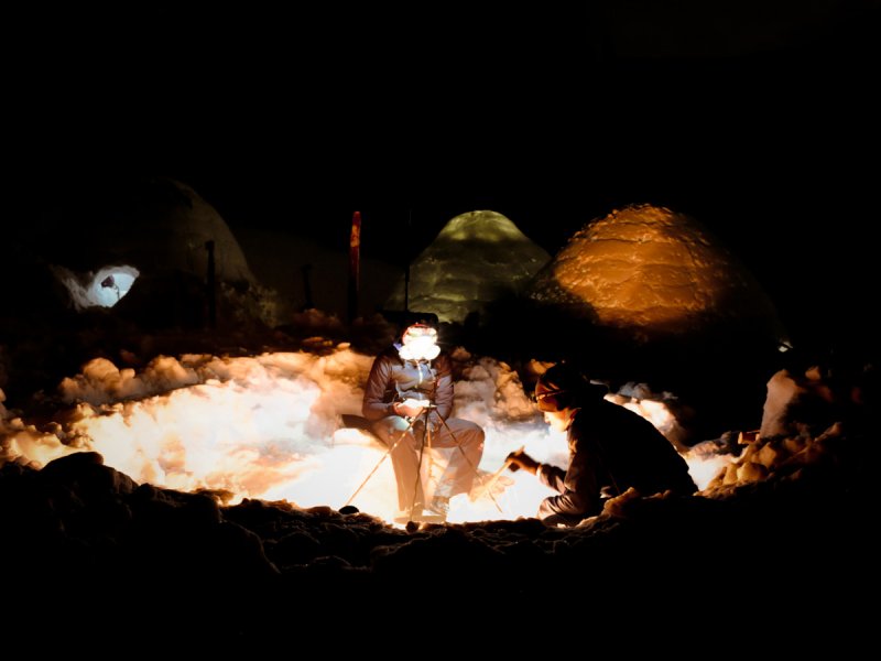 het bouwen van je eigen iglokamp en slapen in je eigen gebouwde iglo.